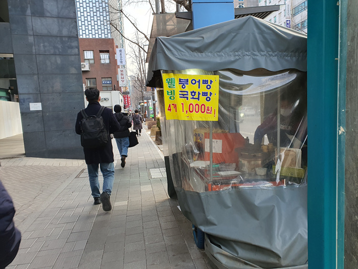 이렇게 착한가격의 붕어빵은 정말 오랜만에 보는 듯 합니다. 서울이라서 가능한걸까요? 아니겠죠.... 하여간 지나가다 발길을 되돌려 붕어빵 가게로 향하게 되었네요.