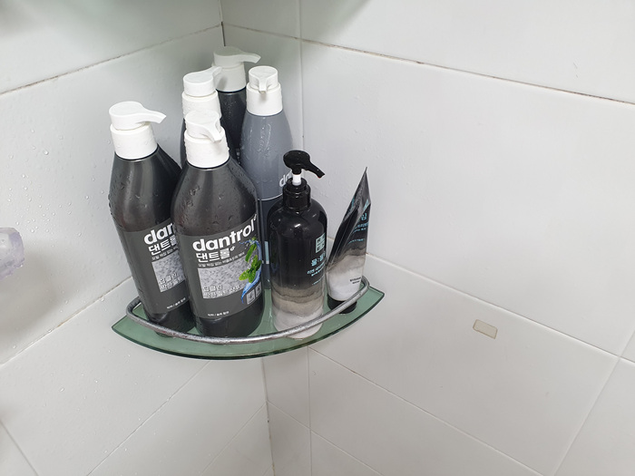 그러기에 곳곳에 샴푸가 튀면 진짜 대청소는 기본으로 해야 한다. 처음에는 샴푸가 묻으면 즉각 솔로 박박 문질러서 닦았다. 이것도 한 두번이지 여간 번거로운 것이 아니었다.