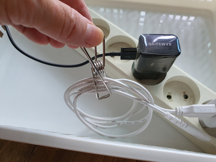 긴 전선을 정리해 집게를 꽂아두니 지저분함이 사라졌다.