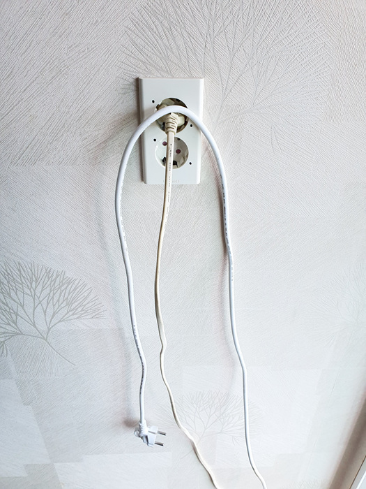 깨끗이 닦은 콘센트에 평소 사용하는 코드를 꽂기로 했다.