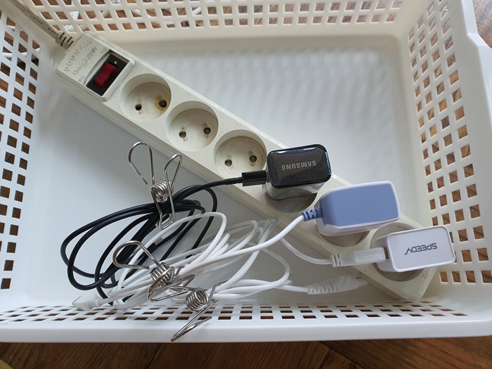 굴러 다니고 엉킨 코드 전선 모으는데는 바구니가 딱이라는 생각이 들었다.