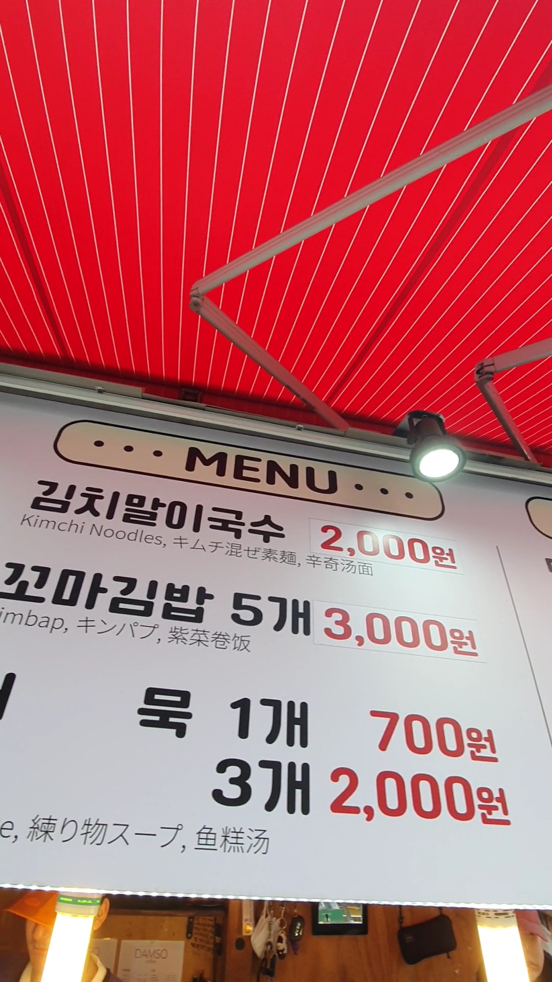 길거리 노점이다 보니 가방 걸어 두는 곳도 마련된 것이 재미나다. 별거 아니지만 톡톡 튀는 아이디어다.