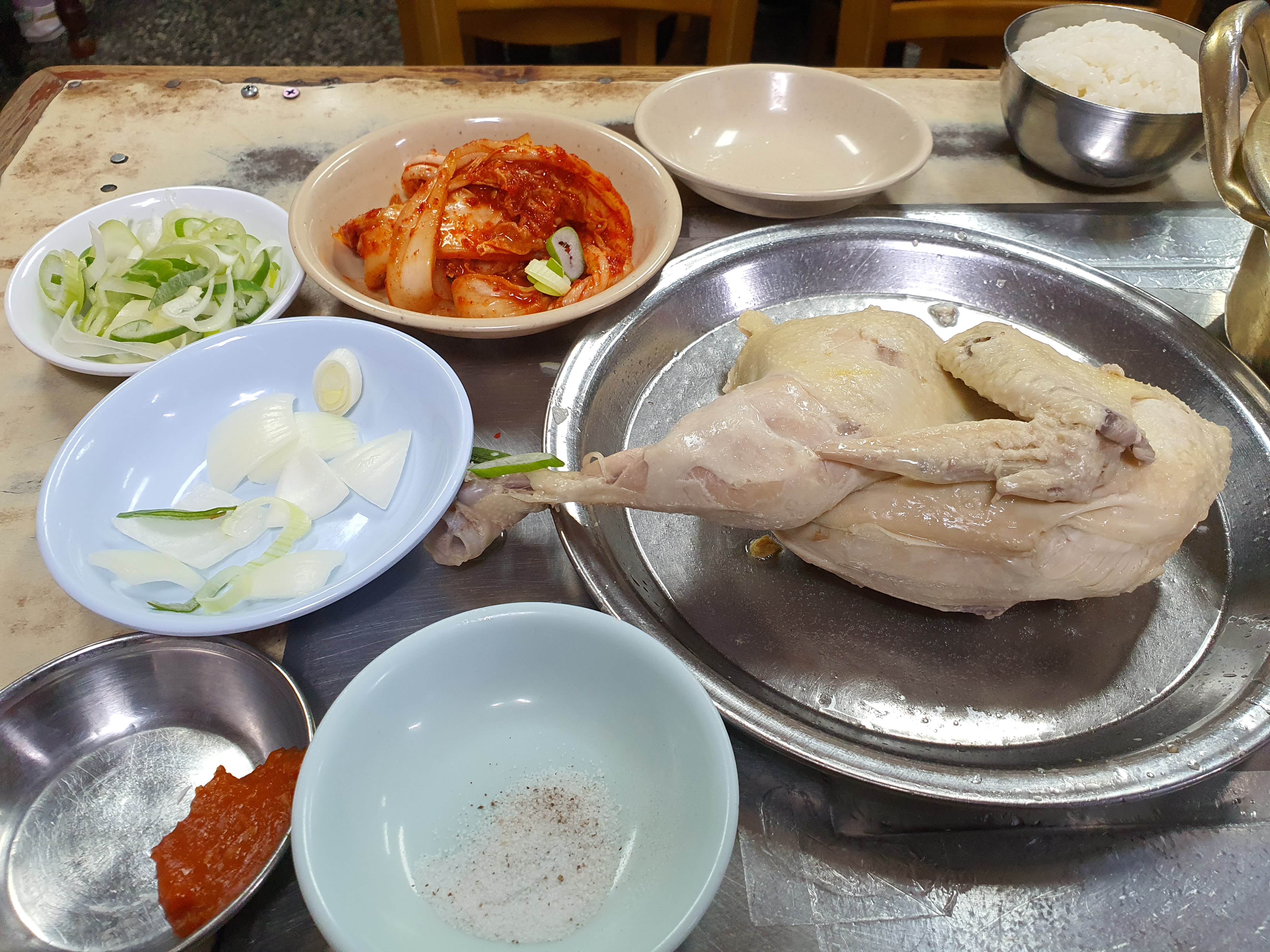 백숙백반은 별거 없다. 김치반찬과 국물 그리고 밥과 통닭 반마리가 나온다. 하지만 왠지 먹으면 진짜 보양이 될것 같은 느낌이 많이 들었다.