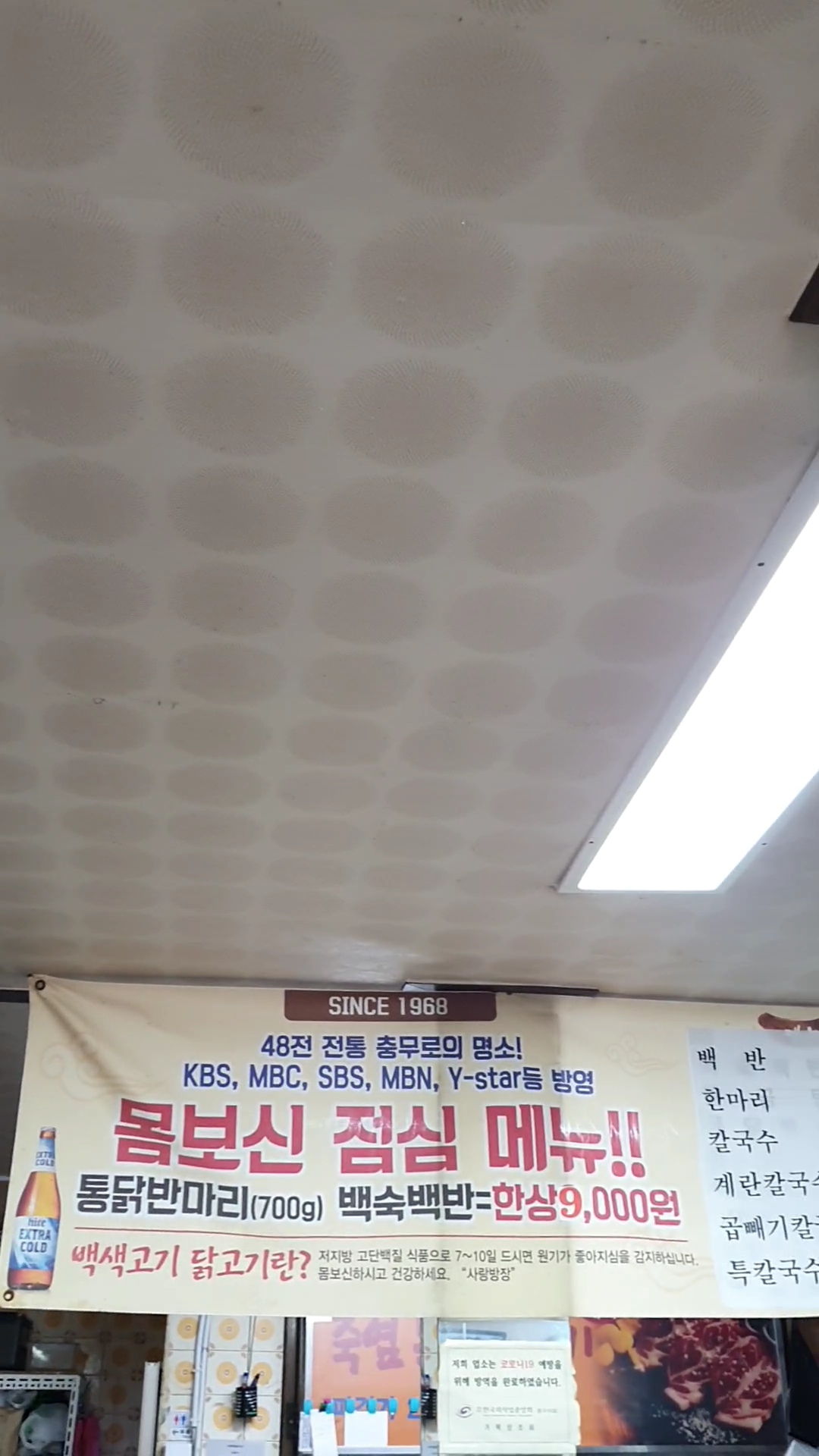 몸보신 점심 메뉴 통닭반마리가 나오는 백숙백반은 한상 9,000원이다. 우린 백숙백반과 칼국수를 주문했다.