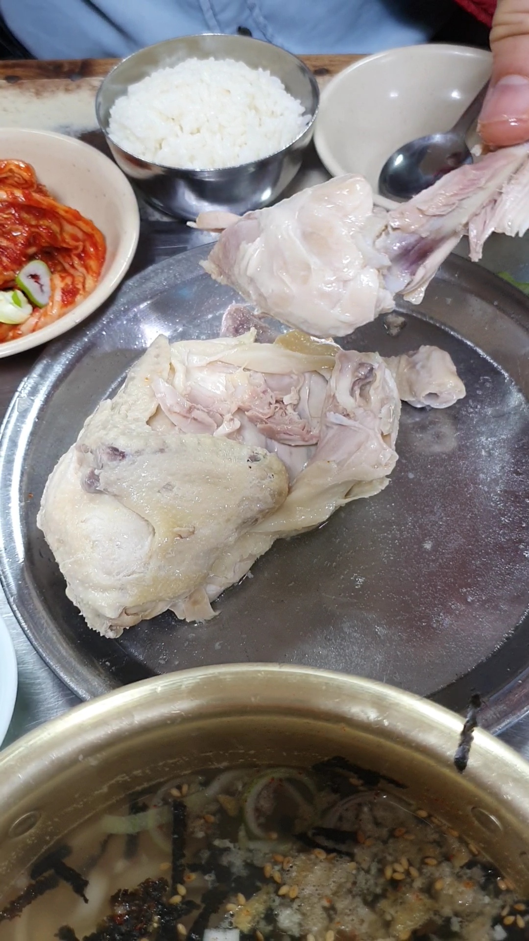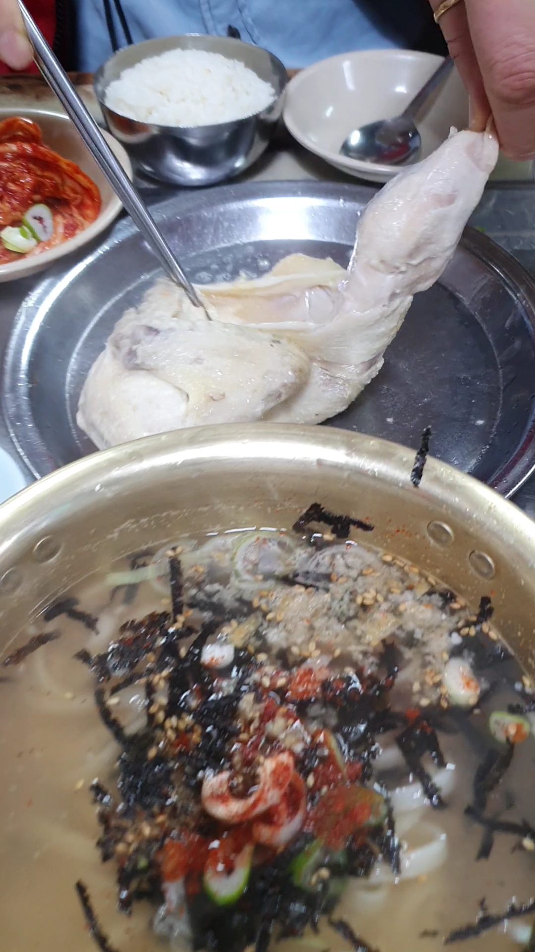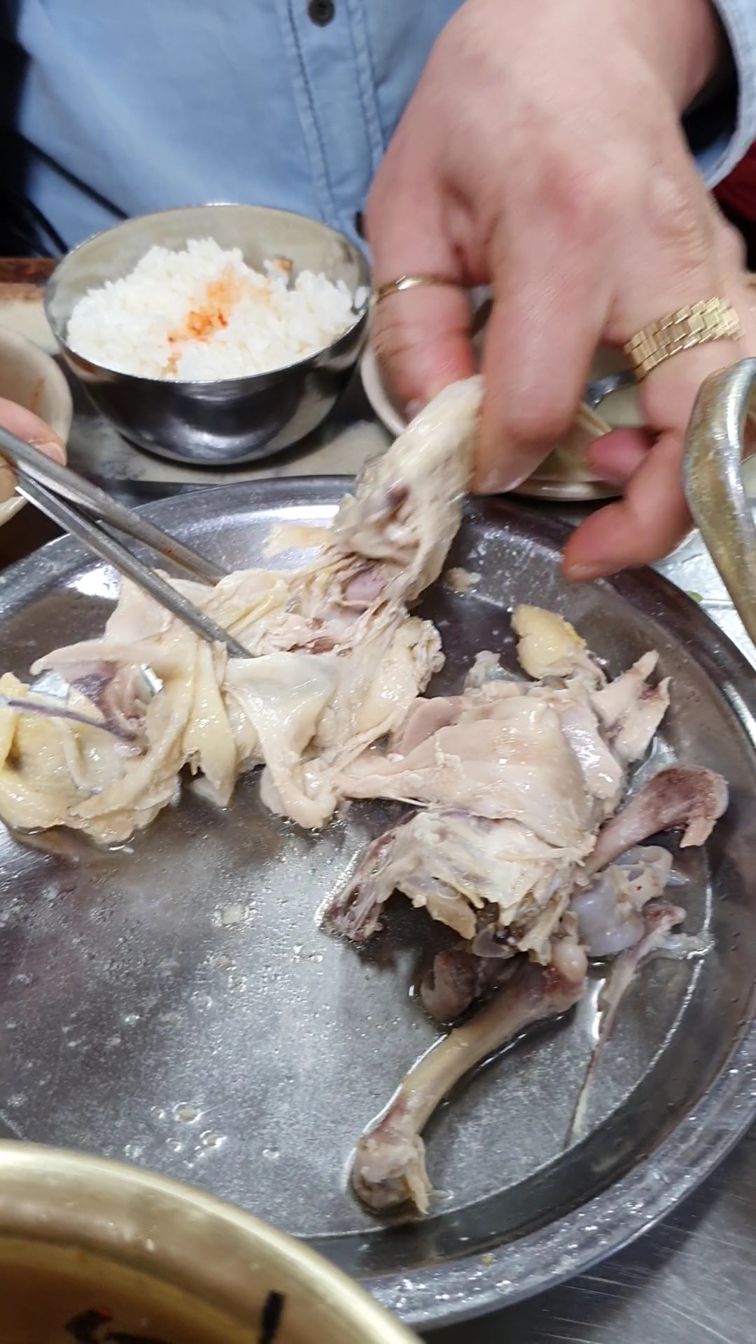 백숙은 손으로 뜯어 먹어야 제맛이다. 어찌나 잘 삶았는지 살이 잘 분리가 되었다.