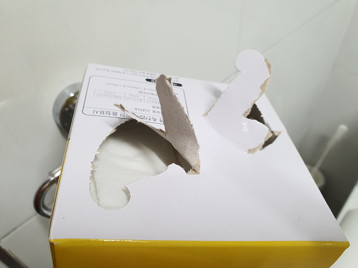 보통 각티슈를 사용할때는 이렇듯 그냥 선반등에 바로 두고 사용하는데요. 화장실에서 까지 이렇게 두고 사용하면 조금 불편하겠죠.