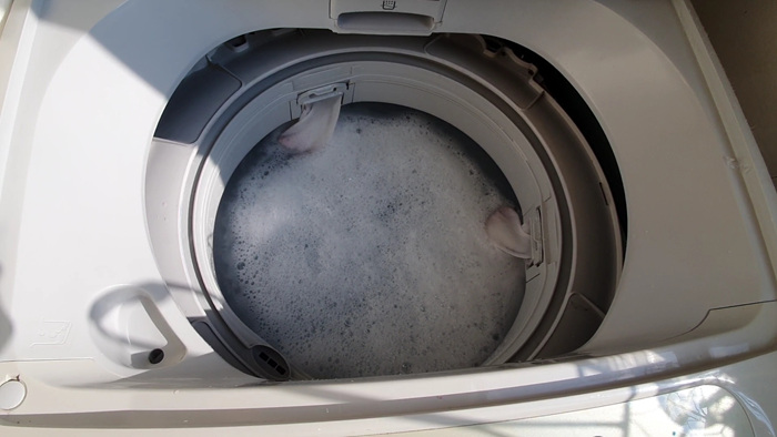 세탁기에 세탁물을 넣기 전 미리 세제를 넣고 물에 잘 풀어 준 뒤 세탁물을 투입합니다. 그리고 세탁기를 돌리면 세제가 옷에 묻어나는 일이 없이 깔끔한 세탁을 할 수 있어요. ^^