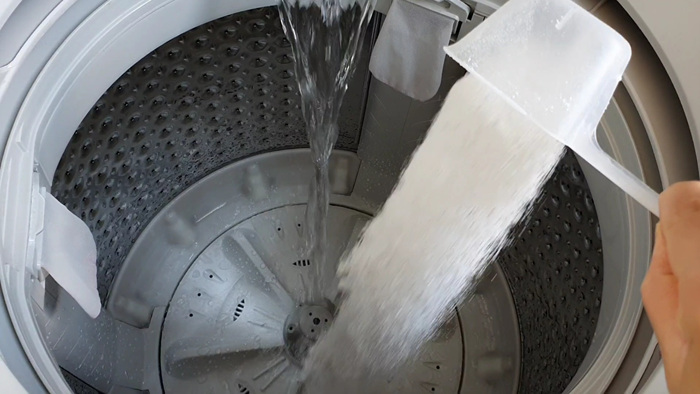 세탁물을 넣기 전 세제를 먼저 넣고 표준코스로 한 번 돌려주세요. 단, 탈수는 하지 말고 표준코스 약 2~ 3분 정도 돌립니다.