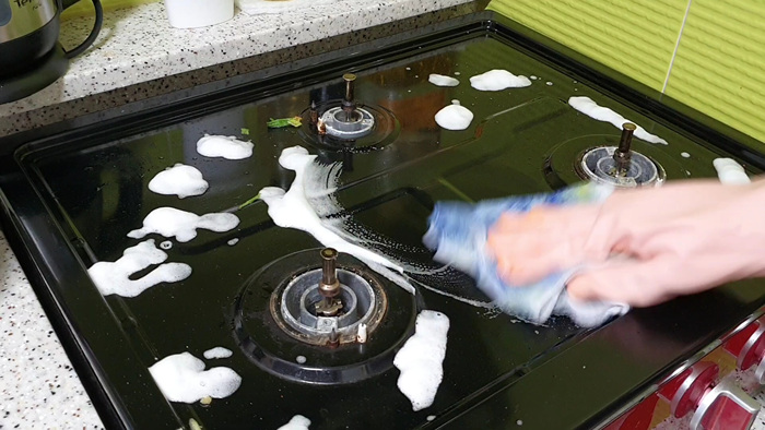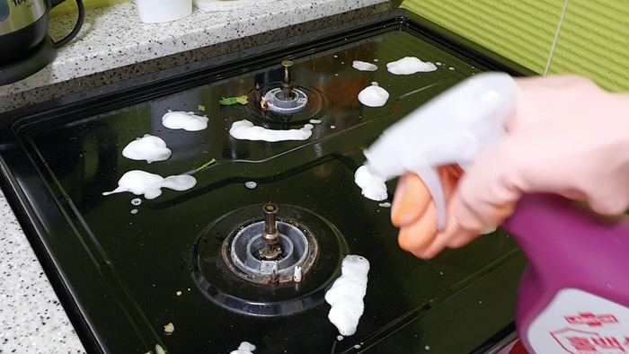 부속품들을 물에 담궈 두는 동안 가스렌지 상판을 청소했어요. 가스렌지 전용세제가 너무 잘 나와 기름기등 때는 쉽게 지워져서 좋더라고요. 단, 환기는 필수로 해주어야 한다는 점!