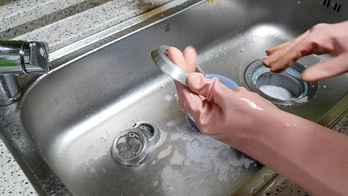 다 분리한 부속들은 기름때등이 있을수 있어 따뜻한 물에 담궈 둔 후 세척하면 때가 훨씬 잘 지워집니다. 물에 담궈둘때는 세제를 조금 풀명 더 좋아요.
