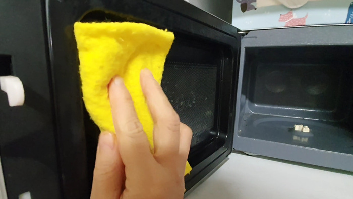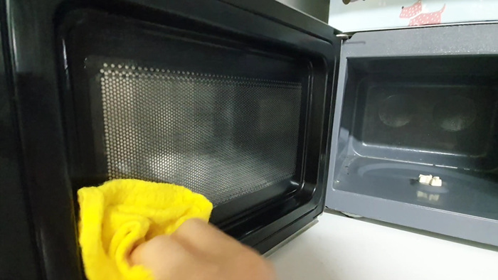 단, 전자렌지 속 유리는 세제를 이용해 깨끗이 씻어 줘야 해요.