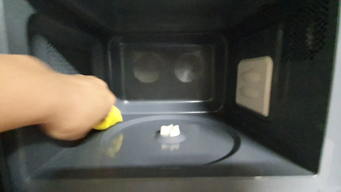 3분 후에 전자렌지를 열면 밀감껍질이 익으면서 향기는 물론 주변에 잘 청소하기 쉽게 되어 있어요. 행주를 이용해 닦기만 하면 되는데요. 어찌나 잘 닦이는지 속이 다 시원할 정도랍니다.