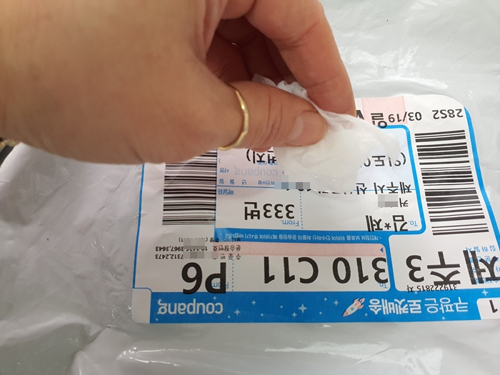 누구나 경험하셨겠지만 택배상자에 붙어 있는 스티커는 나름대로 개인정보만 잘 떨어지게 되어 있는데 비닐봉지에 붙어 있는건 전체를 뜯어야 하는 경우가 있어 조금 불편해요.
