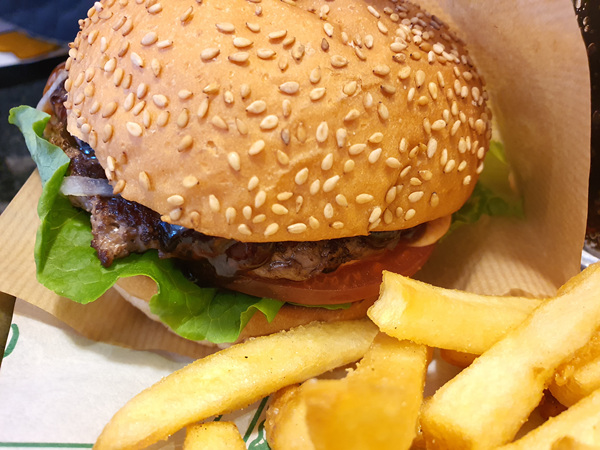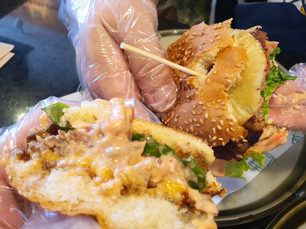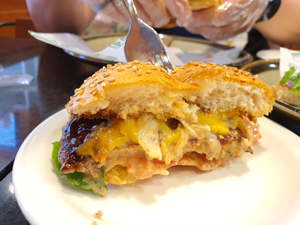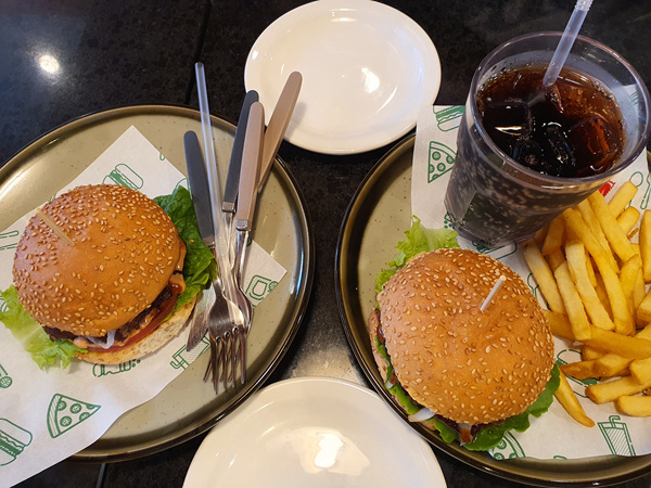 칼로 썰어 먹어도 되지만 역시나 햄버거는 손으로 들고 먹어야 더 맛있는거 같다.