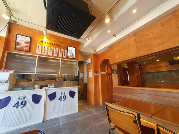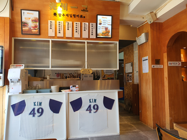 야구 관련 인테리어 소품 보는 재미도 솔솔한 김병현 햄버거 가게다.
