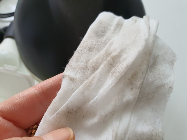 한 번만 물티슈로 닦았을때의 모습입니다. 꽤 깨끗한 상태죠. 물론 한 번 더 닦으면 더 완벽하게 먼지를 제거할 수 있답니다.