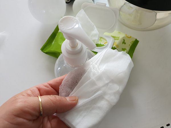 여기서 잠깐! 먼지가 너무 많아서 물티슈도 깔끔하게 닦이지 않는다면 손소독제를 묻혀 닦아 보세요. 놀랍도록 먼지가 잘 닦입니다.