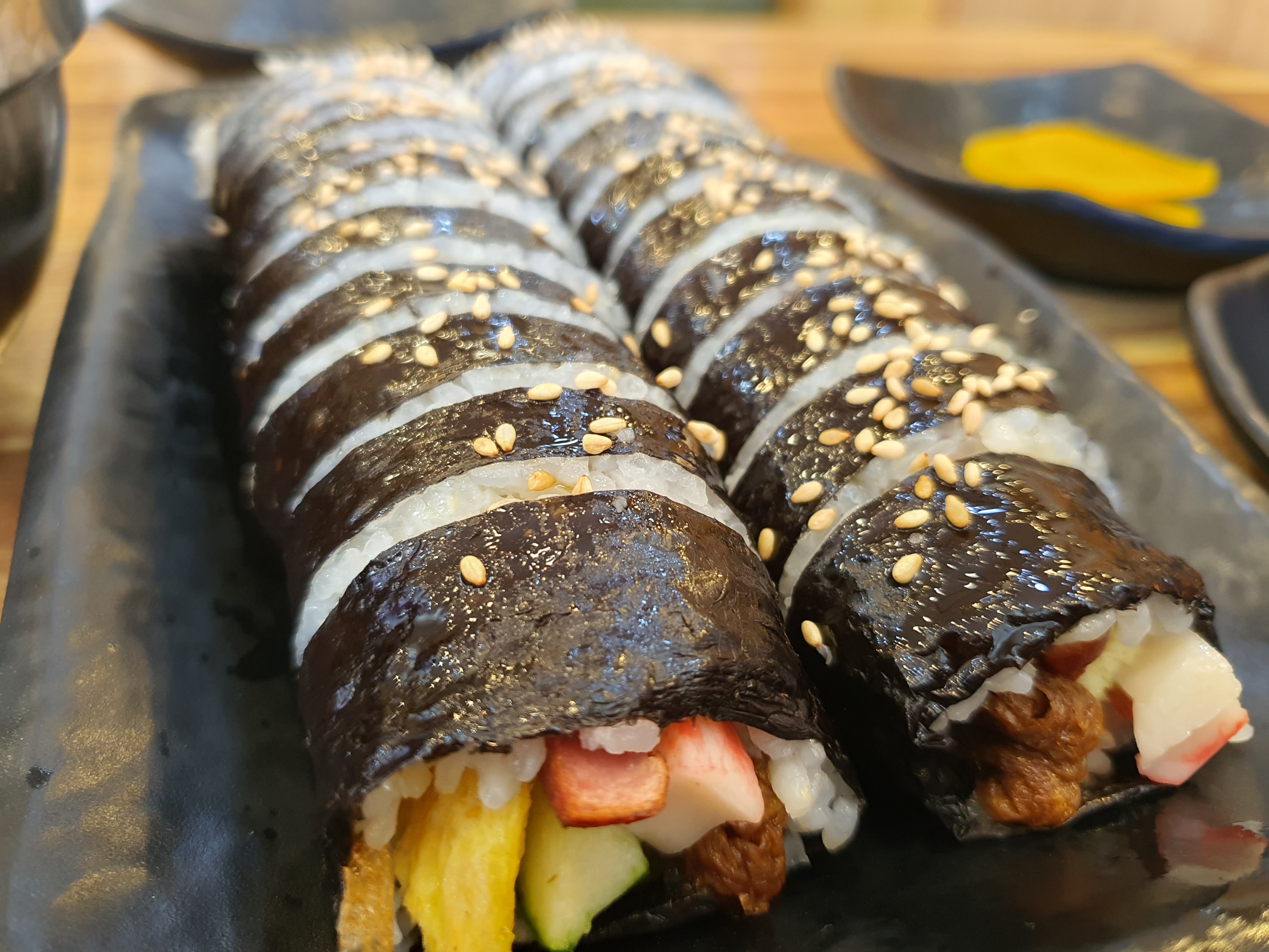 김밥이 6,000원이지만 두 줄이 나오니 그렇게 비싸진 않아 보였고 먹어보니 맛도 있었어요.