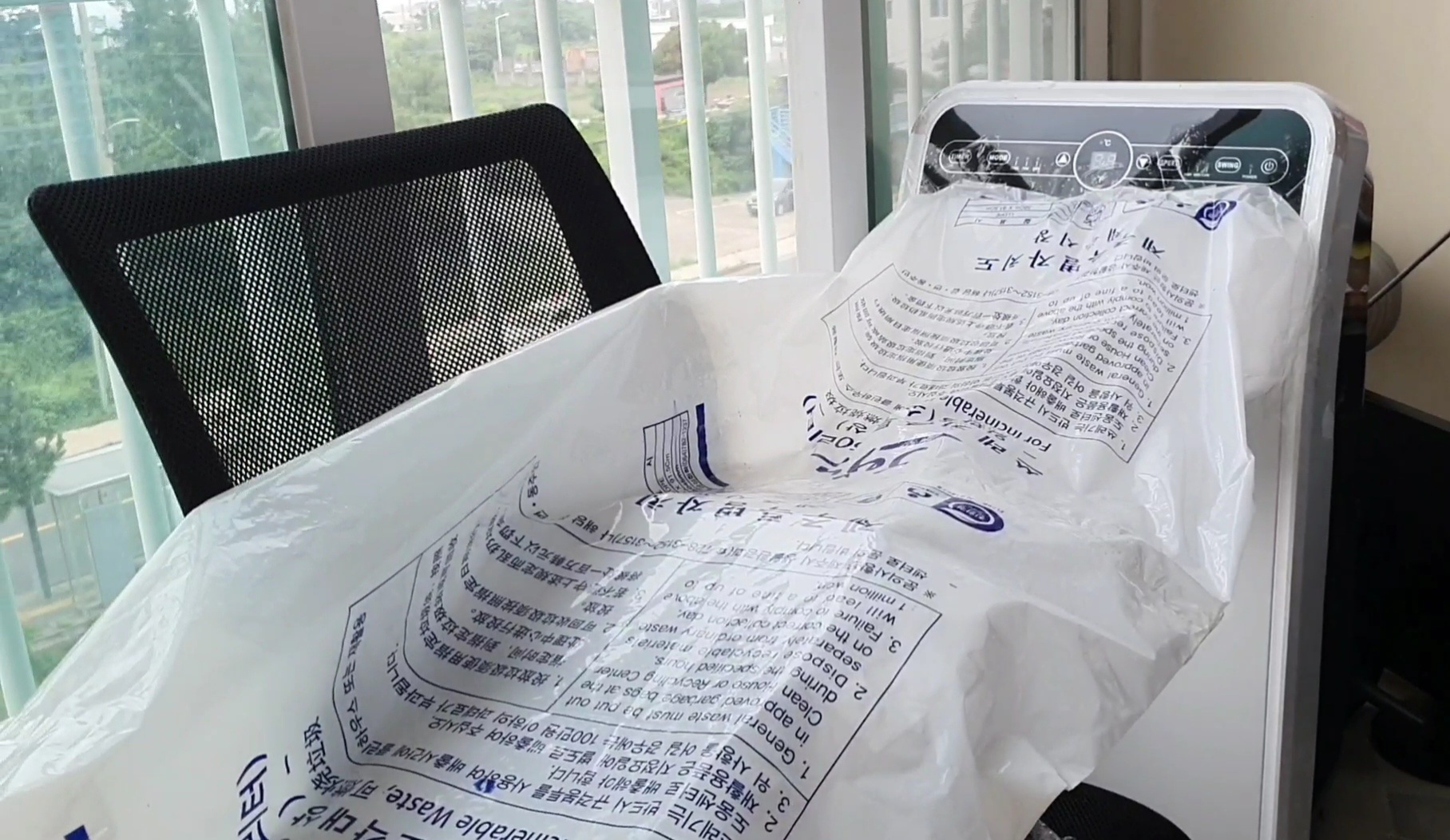에어컨을 작동하니 쓰레기봉투를 연결한 곳에서 시원한 바람이 빵빵하게 나왔습니다.