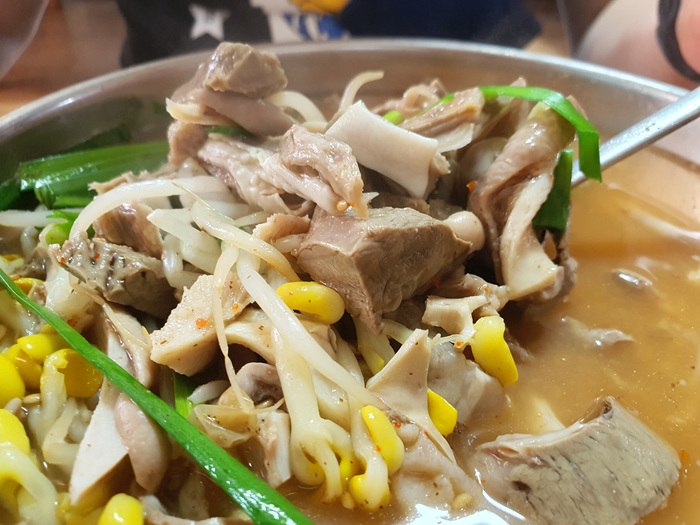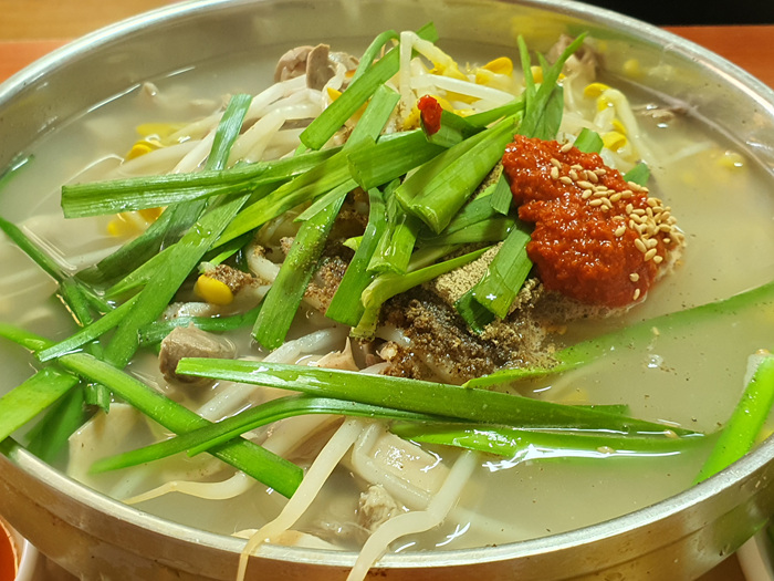 푸짐해 보이든 국밥 비주얼이다. 예전과 달리 조금 아쉽다면 1인분을 주문하면 순대가 국밥 속에 없다. 예전엔 들어 있었던 것 같은데 이 또한 물가가 오른 탓일까 기본 속재료가 사라진 느낌에 개인적으로 조금 서운함이 느껴졌다.