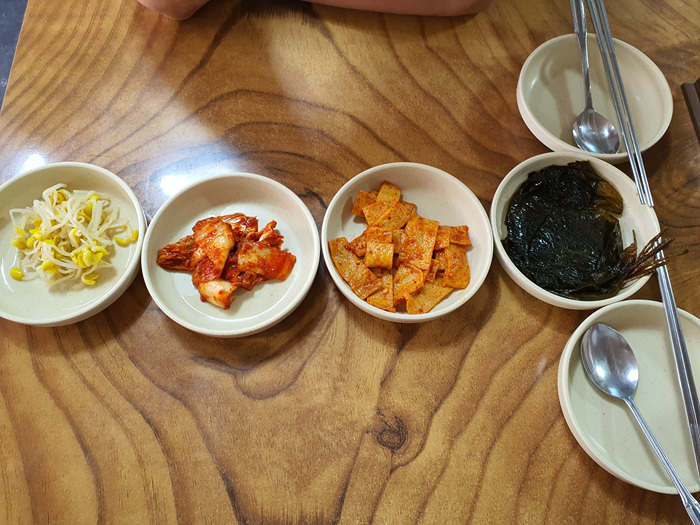 반찬은 직접 만든 것으로 2가지, 기존에 나오는 것 2가지입니다. 반찬은 거의 변함이 없는 것 같습니다. 참고로 밥은 추가 주문하면 무료입니다. 대부분 추가는 하지 않으시지만요. 주인장이 꾹꾹 밥을 눌러서 주거든요.