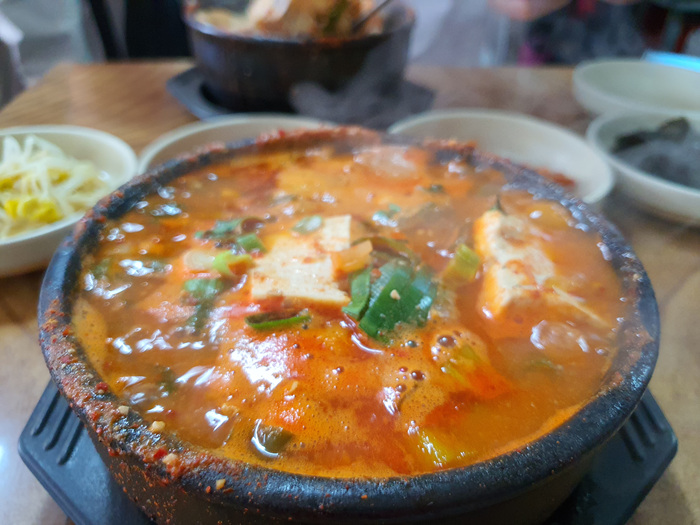 워낙 많이 기다리다 보니 주변에 동태찌개 파는 음식점들이 한 두개씩 생겼어요. 그곳도 맛있다고 소문이 자자하더라고요. 우리가 갈때마다 나름대로 바쁜 시간대를 피해서 그런지 30분 정도만 기다리면 되어 우린 늘 이곳에서 식사를 했습니다.