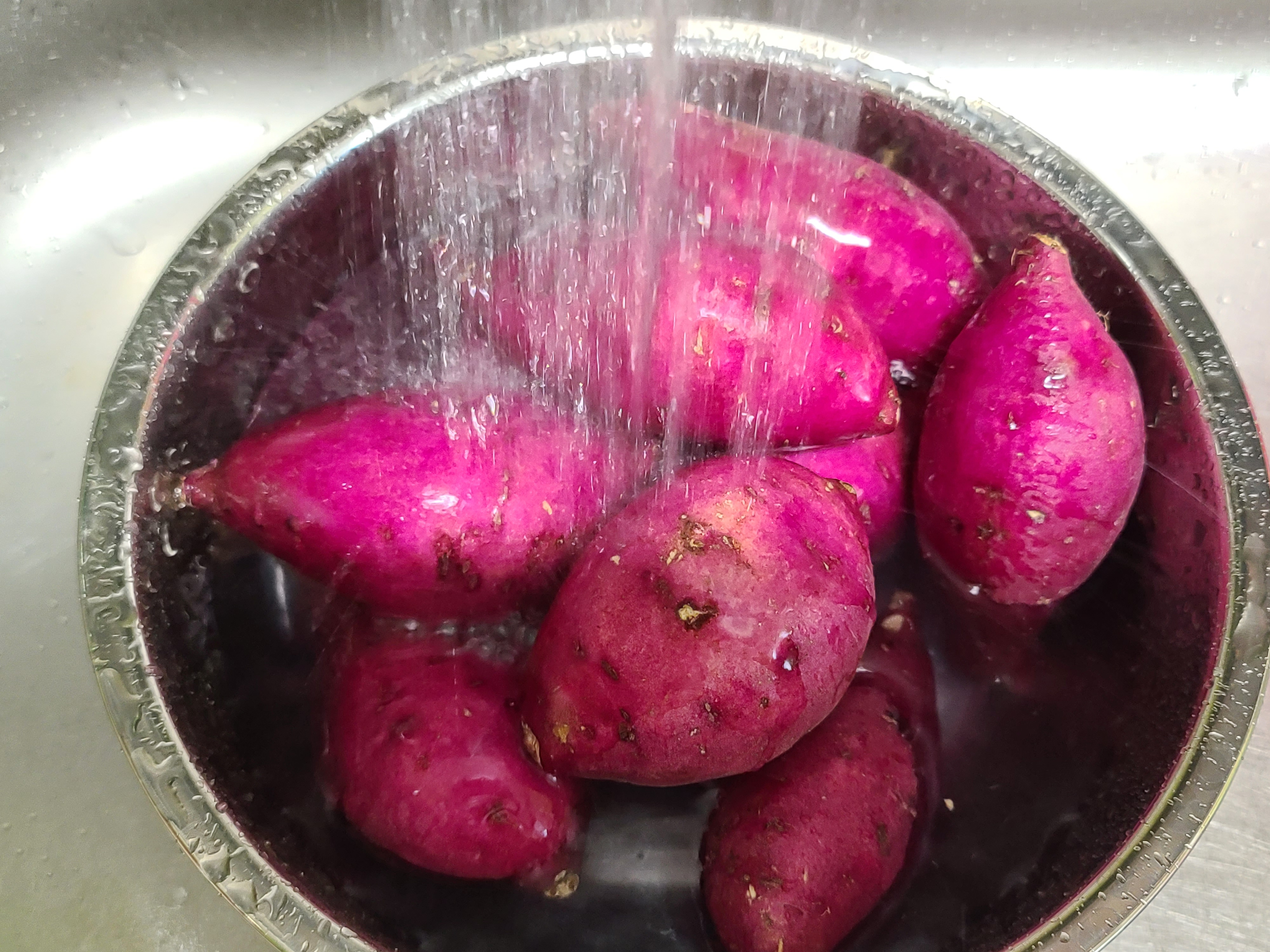 고구마를 삶기 전 깨끗이 씻어 줍니다.