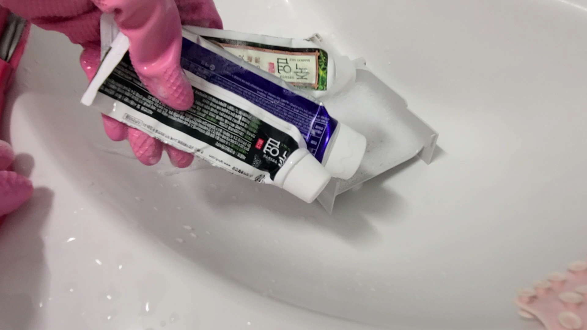나머지 자투리 치약은 세탁조에 넣어 물과 함께 돌려주면 세탁조 청소 자동으로 됩니다.