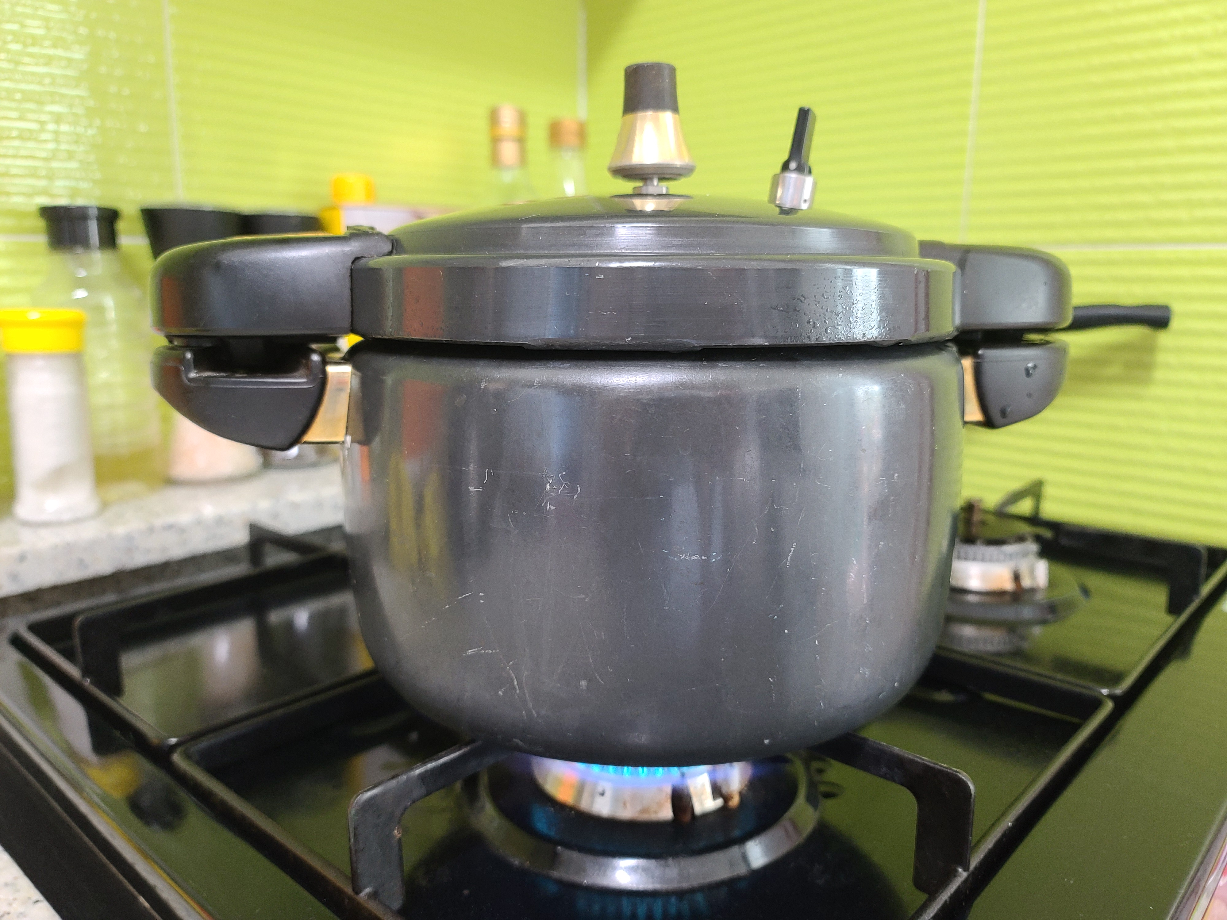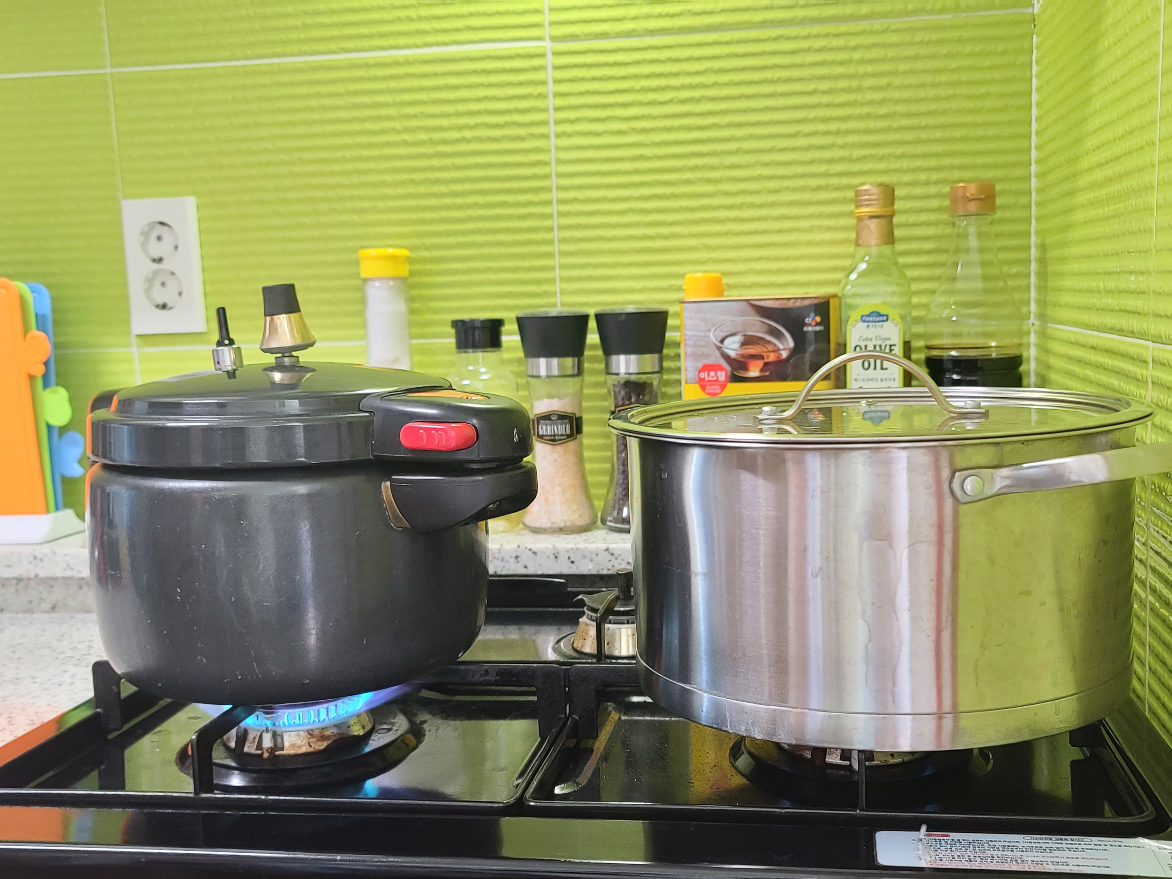 여기서 물에 불리지 않고 맛있는 밥을 하는 방법은 2번 압력밥솥에 하는 방법입니다. 압력밥솥의 추가 울라면 3분 ~4분 았다가 가스불을 끄고 김이 다 나갈 때까지 기다렸다 뚜껑을 엽니다.