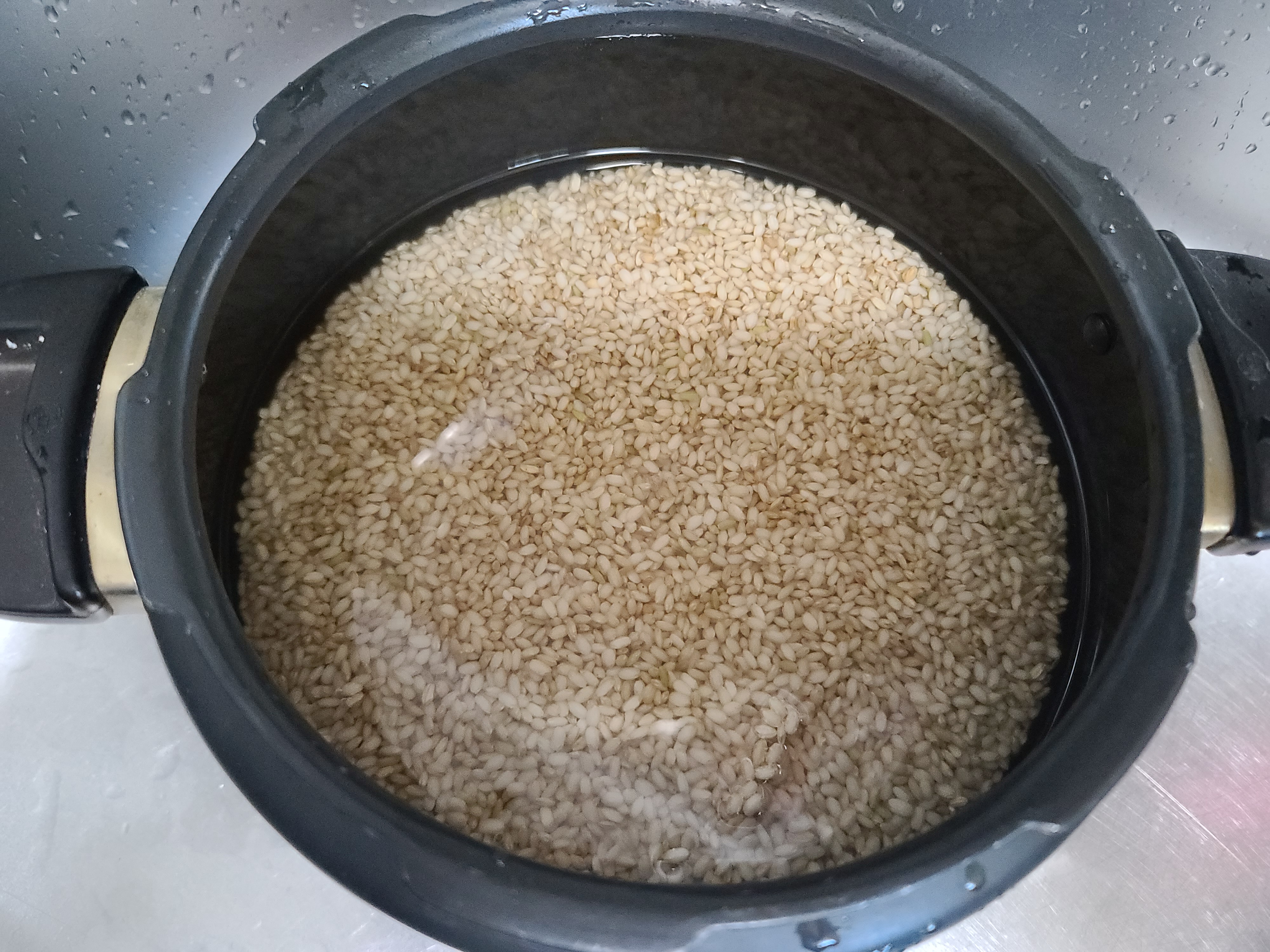 1차 밥을 하면 이렇게 법이 설익은 상태인데요. 이 상태에서 물을 자작하게 부어 다시 밥을 합니다. 2차로 말이죠.
