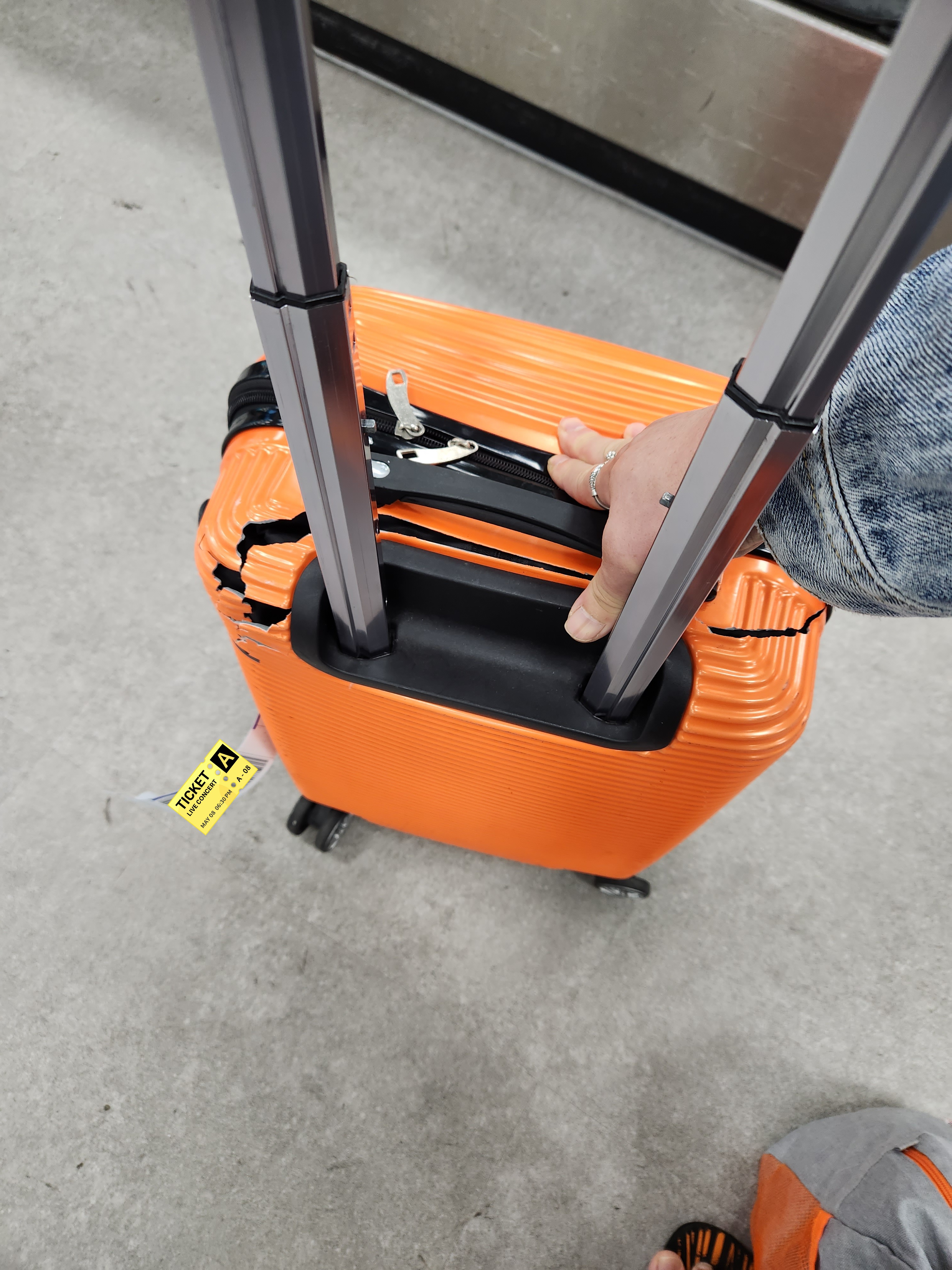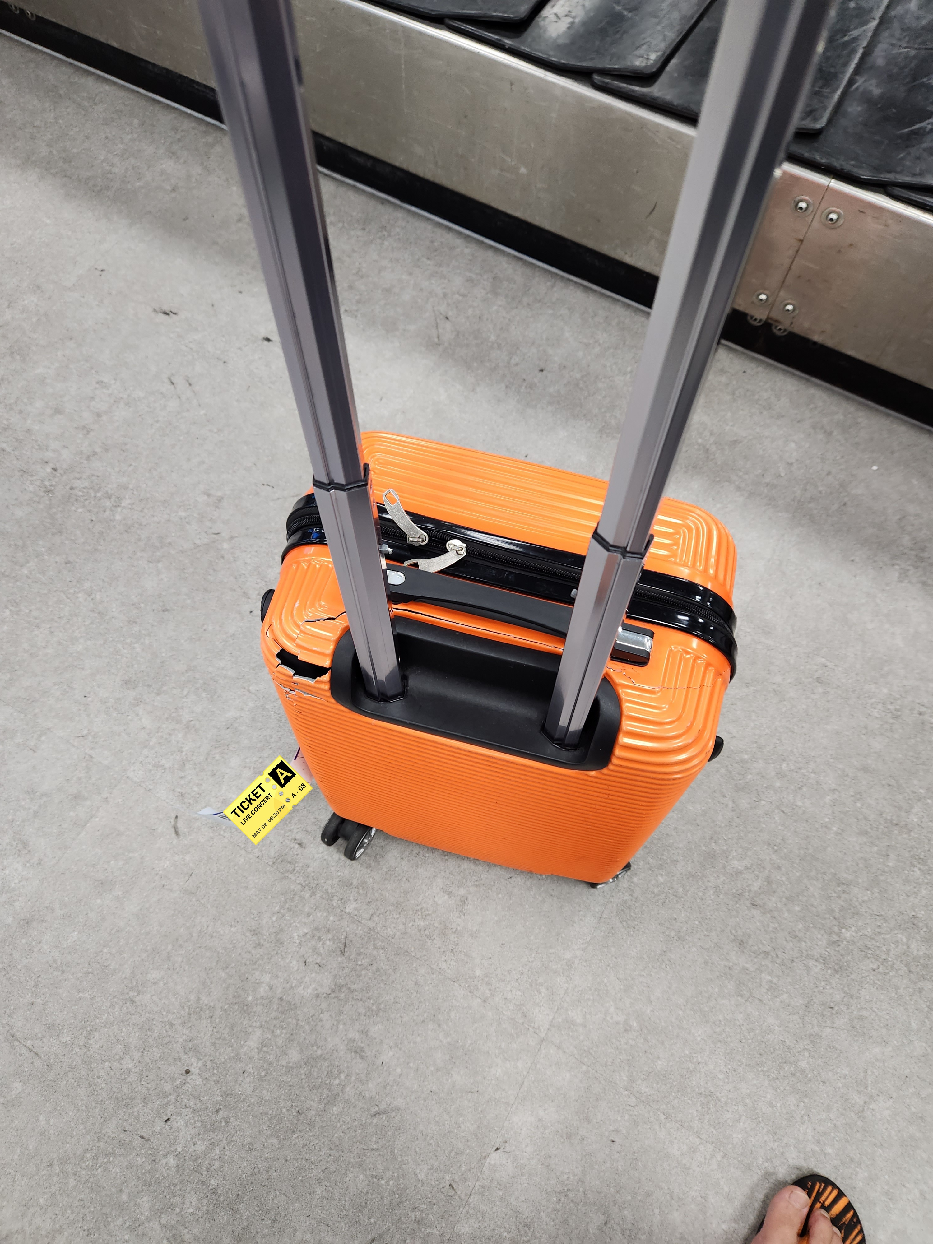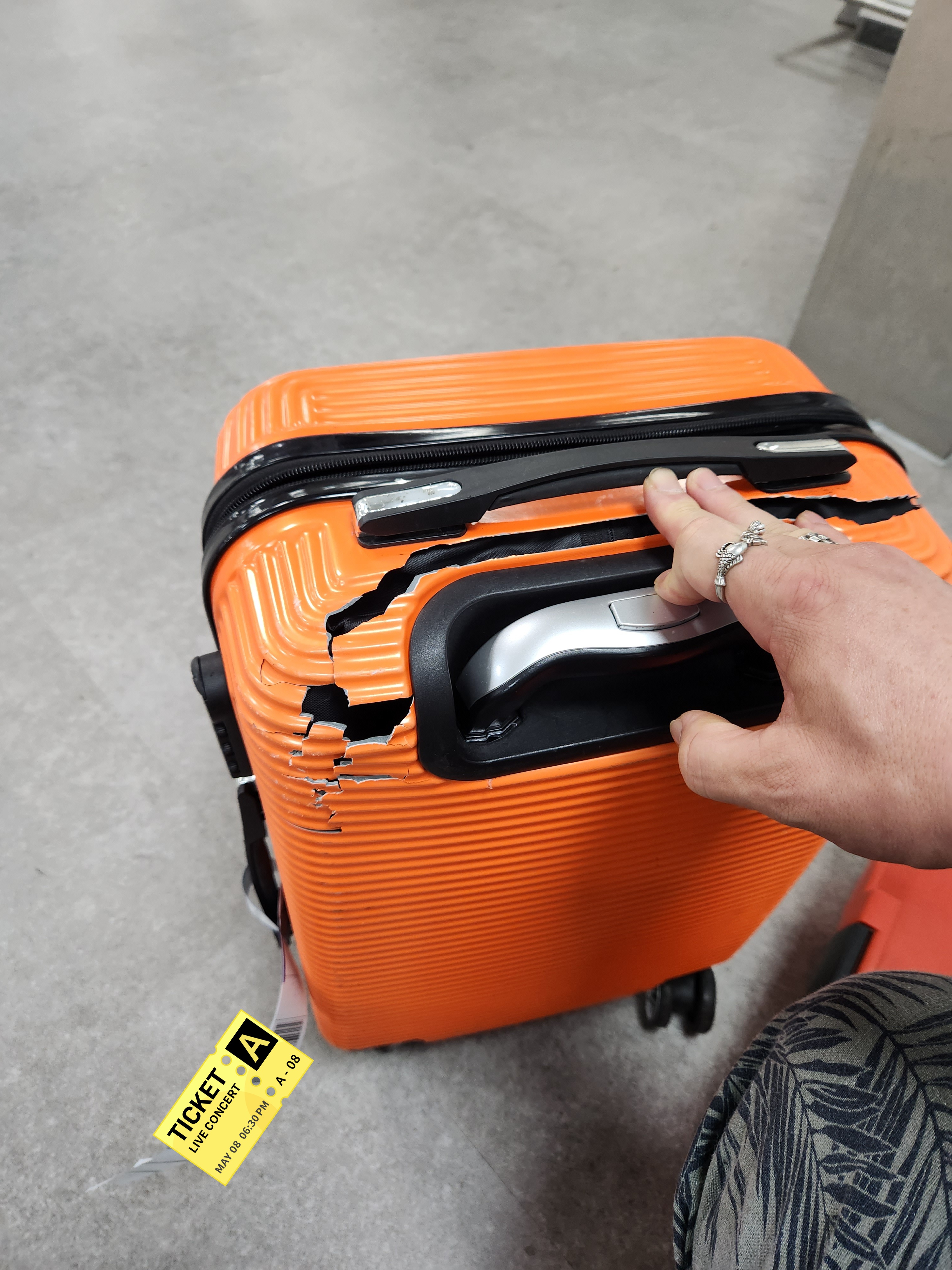 수화물 찾는 곳에 한참을 기다리다 나 온 윗부분이 박살 난 캐리어의 모습.... SNS에서 해외토픽으로 간혹 던지고 짐을 정리하는 것은 봤지만 이게 실제 모습은 아닐진대... 그럼 이 캐리어는 어떻게 된 것이란 말인가??? 하여간 남편은 이렇게 되어 나온 캐리어에 당황했다고 했다.