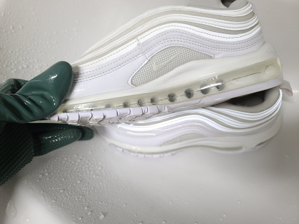 이렇게 지퍼백을 닫아 놓고 10분 정도 후에 세척을 하면 정말 쉽게 때가 빠진 상태를 확인할 수 있어요. 너무 오랫동안 담가두면 혹시나 신발 접착면이 온수로 인해 약해질 수 있으니 권장하지 않습니다.