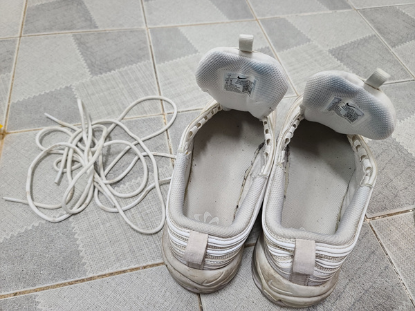 신발끈도 그냥 담궈 뒀을 뿐인데 깔끔한 상태가 되었어요. 이 부분도 손으로 조물조물 한 번 더 세척하면 더 깨끗해지겠죠.