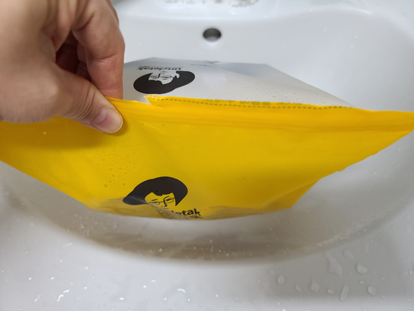 온수를 넣고 난 뒤에는 지퍼백을 이용해 닫아 둡니다. 그 상태에서 약 10분 간 방치합니다.