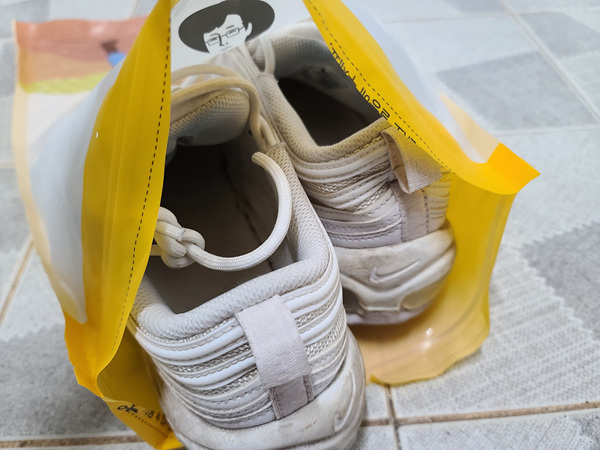 먼저 신발이 들어가는지 비닐봉지를 확인합니다. 들어갈 정도의 크기라면 준비해 주시면 되세요.