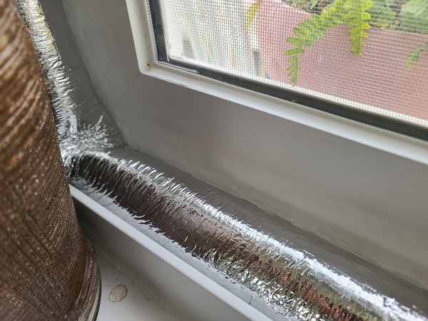 은박 단열제로 틈새를 막을때는 제일 중요한 오른쪽 구멍까지 다 덮히게 막아야 한다는 점입니다. 그 속에서 바람이 쑹쑹 들어 오지요. 아무리 좋은 창호로 창문을 해도 그 틈 사이로 들어오는 바람까진 막지 못하지요. 다 아시죠~