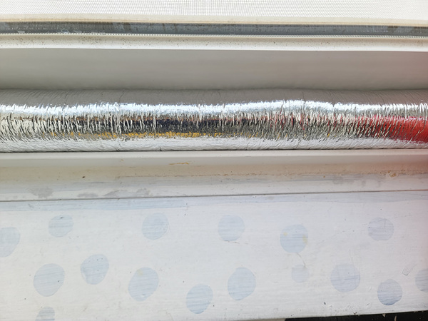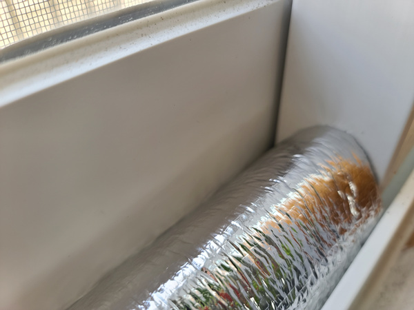 은박 단열제로 틈새를 막을때는 제일 중요한 오른쪽 구멍까지 다 덮히게 막아야 한다는 점입니다. 그 속에서 바람이 쑹쑹 들어 오지요. 아무리 좋은 창호로 창문을 해도 그 틈 사이로 들어오는 바람까진 막지 못하지요. 다 아시죠~