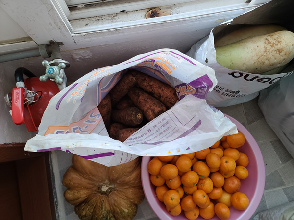 추운 날은 베란다에 잠시 보관해 뒀어요. 날씨 풀릴때 정리해야지 하면서 시간내 당근부터 정리했답니다. 사실 이대로 두고 먹어도 되지만 당근 무게가 있어서 아랫부분은 짓눌려서 상할 수 있거든요.