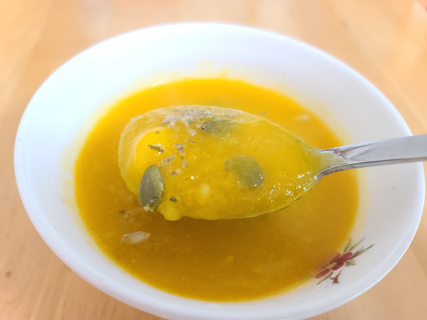 뭐든 따뜻할때 먹으면 제일 맛있죠. 전 바로 만든 호박죽에 견과류를 넣어 같이 먹었어요.