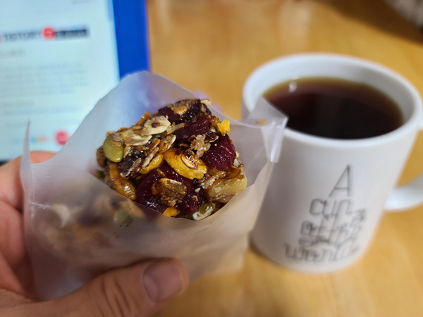 컴퓨터를 하면서 출출할때 커피나 우유랑 같이 먹으면 이만한 간식이 없다. 몸에도 좋고 든든한 한 끼 간식이다.