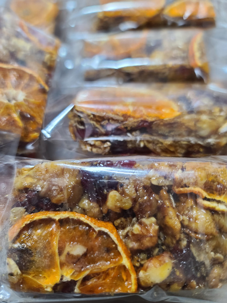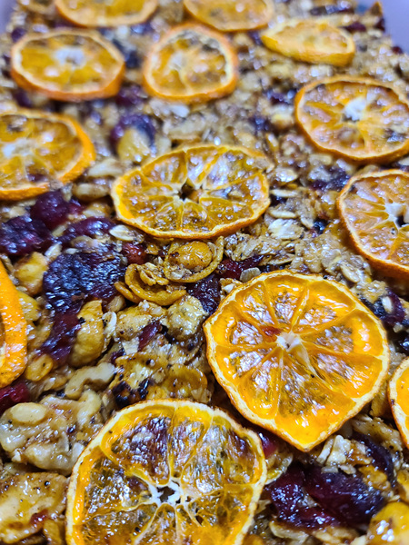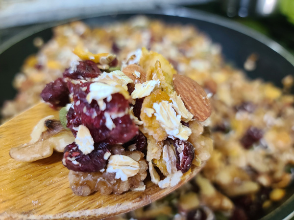 처음 너무 많이 만들어서 언제 다 먹지 했는데 꾸준히 매일 같이 챙겨 먹으니 이내 에너지바가 동이 나서 또 만들었다. 이번엔 조금 업그레이드 시킨 견과류에 말린 귤을 올려 만들었다. 새콤달콤한 맛에 이 또한 내 입에 간식 도둑이 되었다.