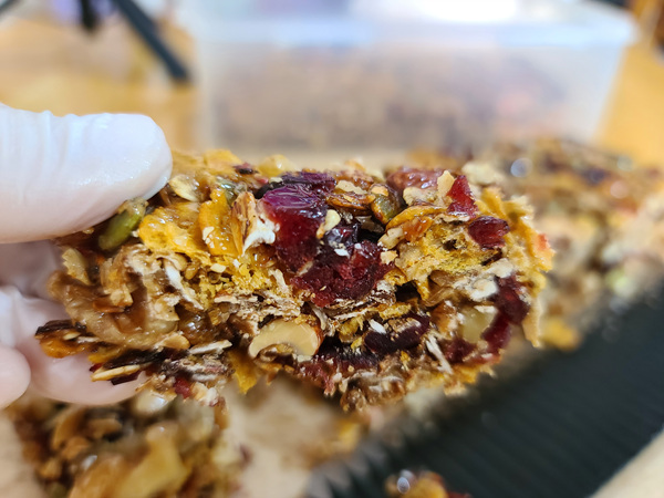 이렇게 만들어 놓으니 과자 간식은 이제 안녕하고 수제 에너지바로 간식 대신이다. 물론 하루 먹을 견과류 양을 에너지바 하나면 충분하니 자연스럽게 에너지바를 잘 챙겨 먹게 되었다. 이번엔 설탕은 저번보다 반으로 줄이고 꿀을 더 많이 넣었더니 말랑말랑 하니 먹기도 더 좋았다. 평소 하루 견과류 양을 잘 챙겨 먹지 않게 되는 경우가 있는데 이렇게 견과류로 만든 에너지바를 만들어 먹으면 누구나 쉽게 먹을 수 있지 않을까~ 내 생각....