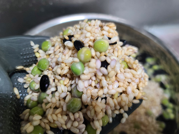잘 불려진 잡곡입니다. 이제 맛있게 밥을 하는 일만 남았어요.