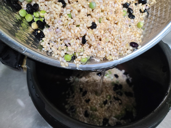 2. 잡곡이 불려진 물은 꼭 버리고 몇 번 헹군 뒤 밥을 지어야 합니다.