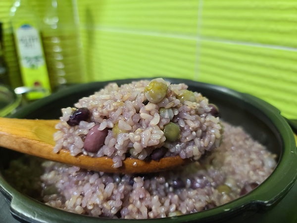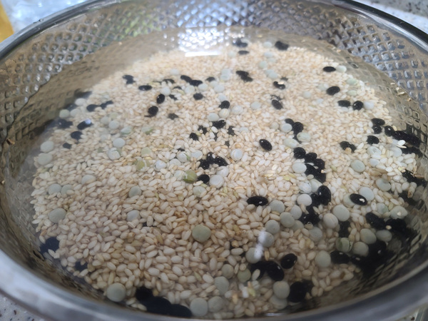 잘 불려진 잡곡입니다. 이제 맛있게 밥을 하는 일만 남았어요.