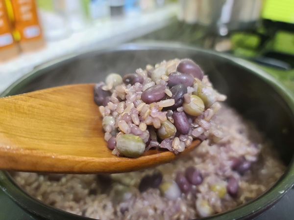 1.현미를 섞은 잡곡밥을 지을때는 물에 최소 한시간 이상 불립니다.