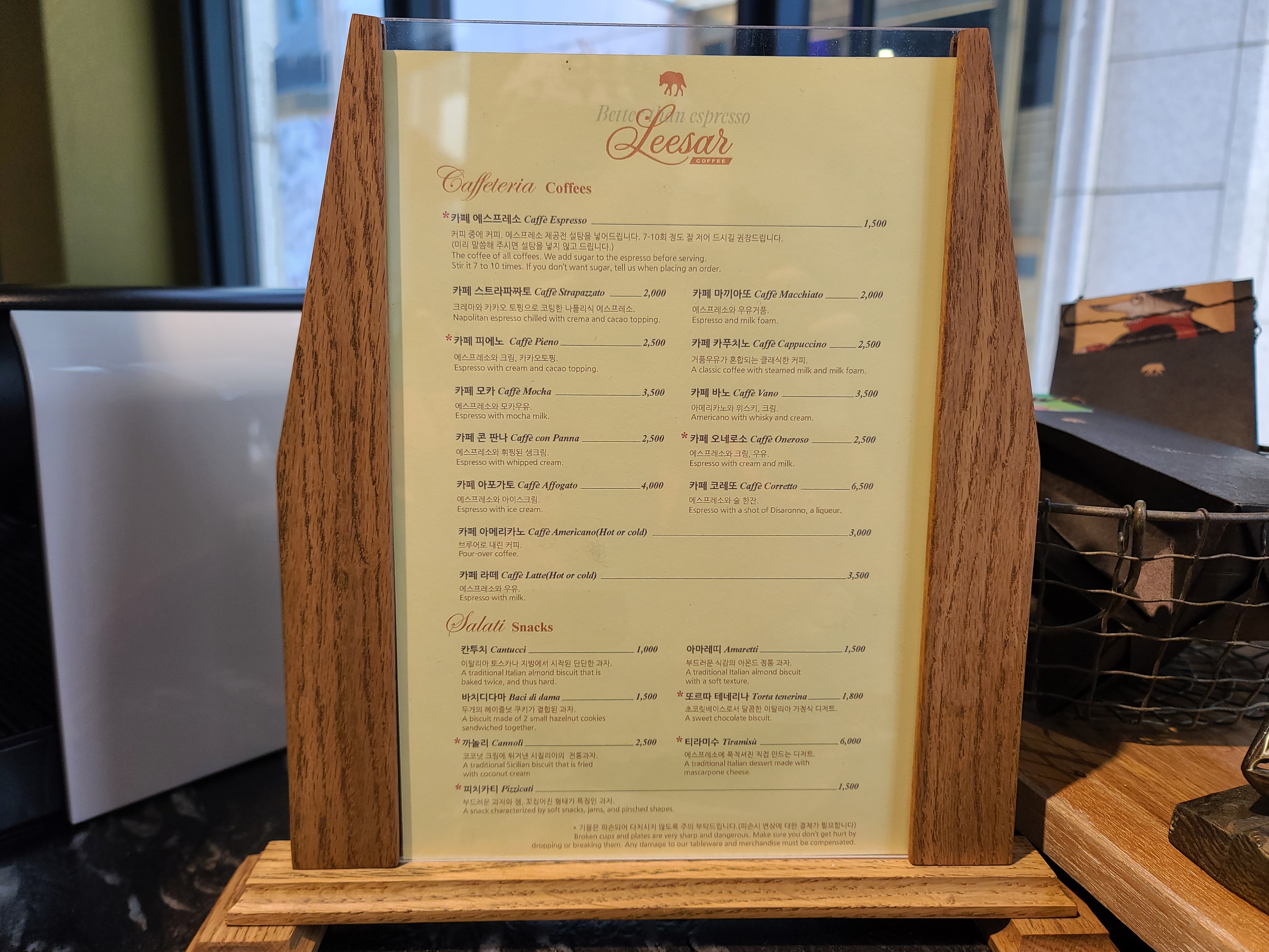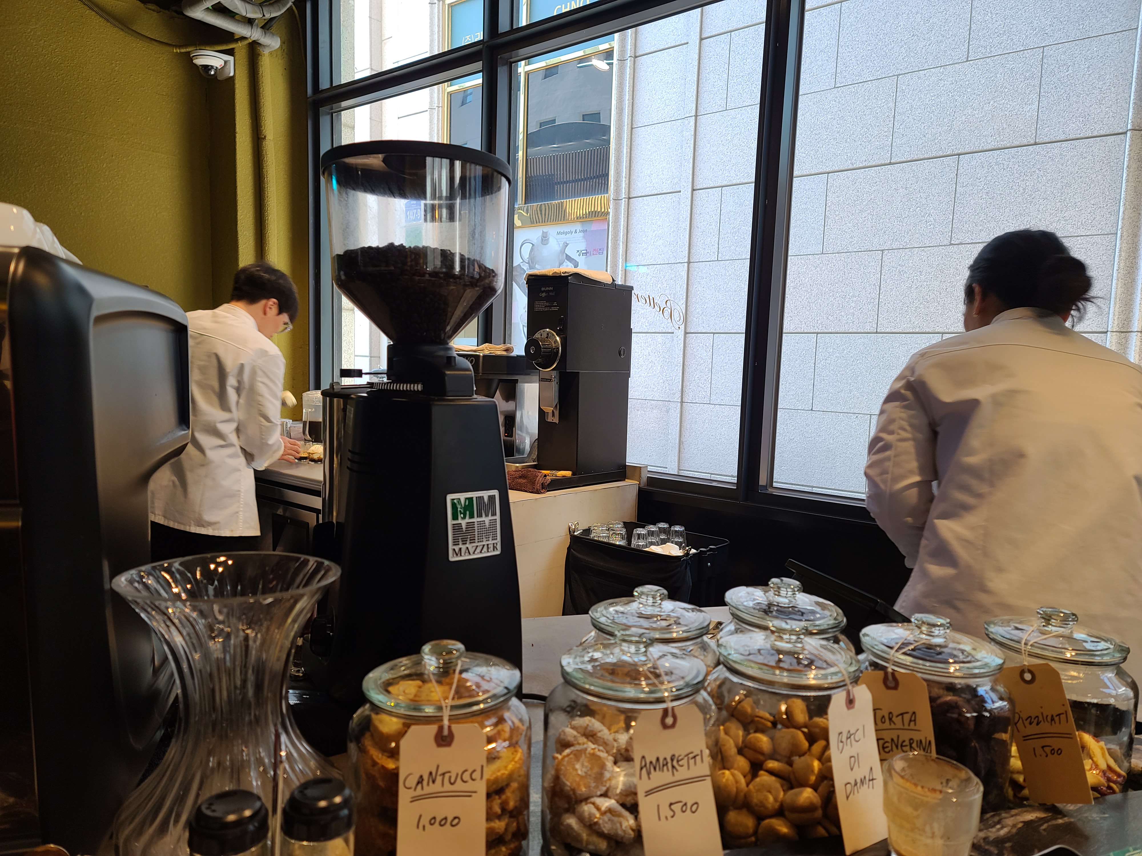 커피숍 외관도 나름대로 괜찮다. 마치 호텔 빵집에 들어서는 그런 느낌도 들었다. 에스프레소 가격이 저렴해서인지 점심시간이 되면 긴 웨이팅은 필수이다. 주변 직장인들이 이곳에 다 커피를 마시러 오는가 할 정도로 붐볐다.