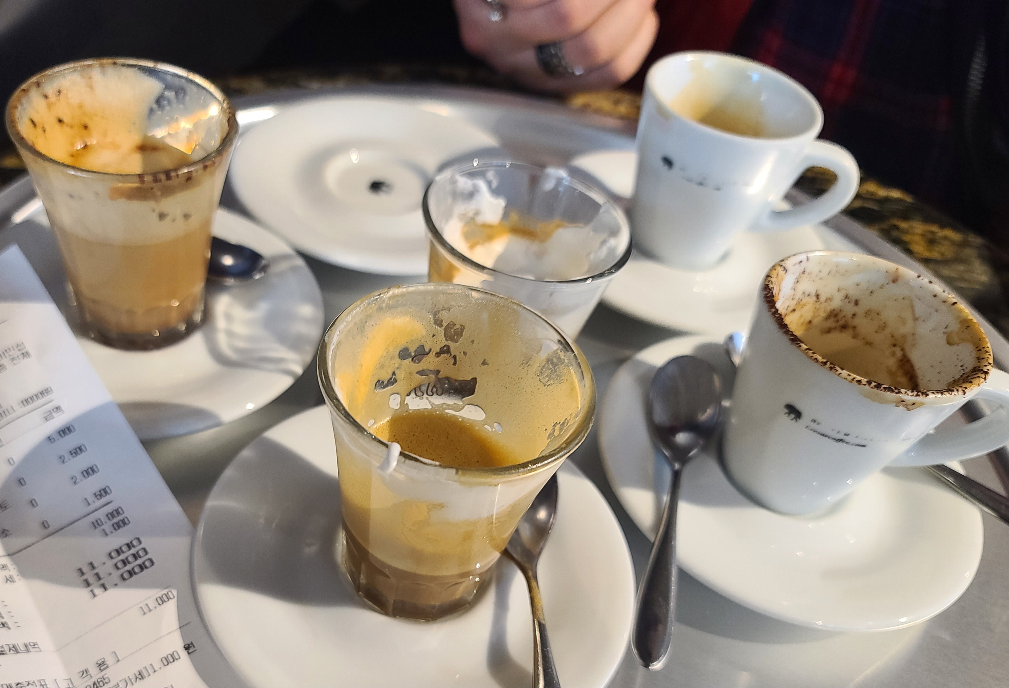 우린 늘 그렇듯 이곳을 방문하면 2명이서 커피 5잔은 마신다. 다양한 에스프레소를 저렴하게 즐길 수 있어 개인적으로 정말 좋다. 제주도에서는 상상도 못 하는 일이다. 하여간 커피 맛도 좋고 나름대로 북적해 보이는 이런 분위기도 마음에 든다. 왠지 사람 사는 느낌이 팍팍 느켜진다고나 할까...