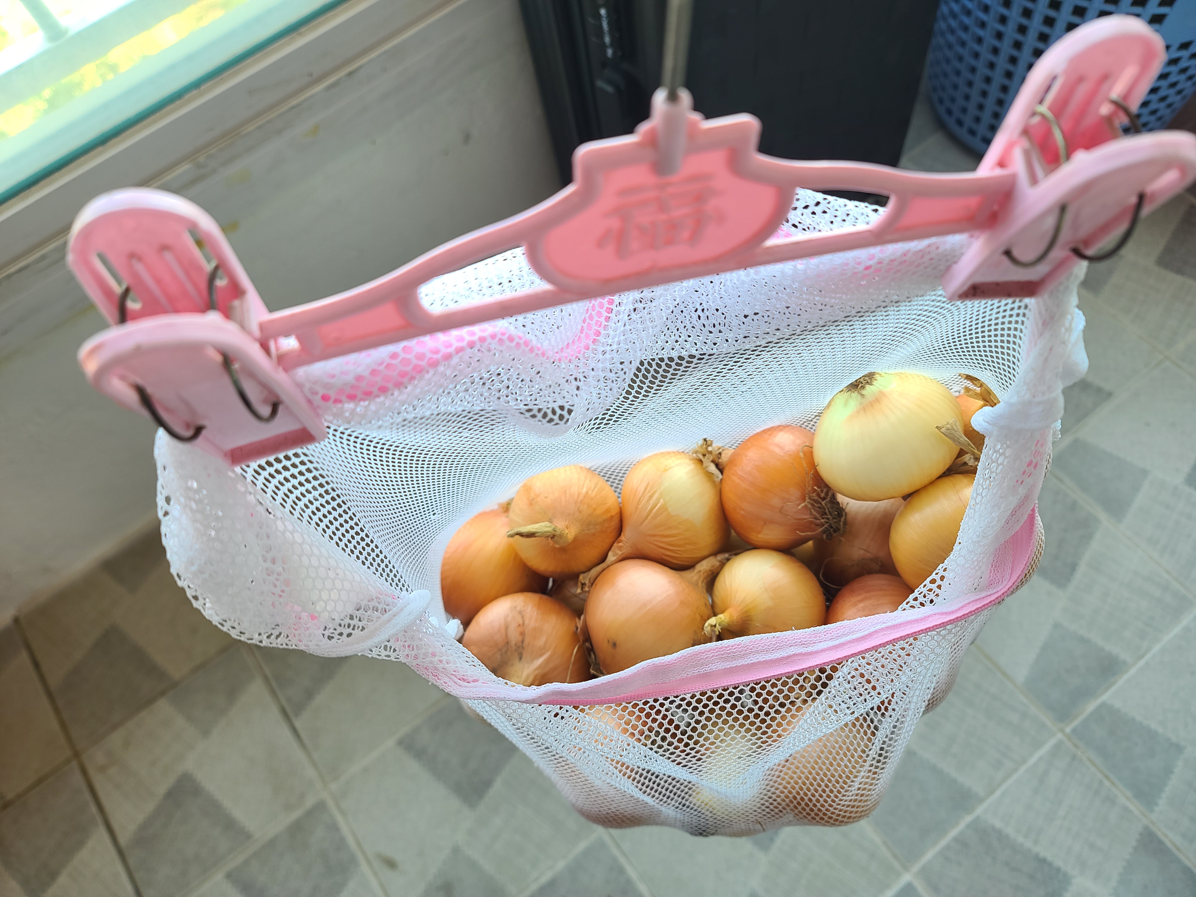 그냥 버리려던 세탁망이 순식간에 양파 건조망으로 바뀌었다.
