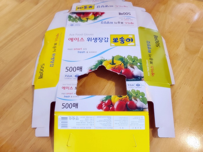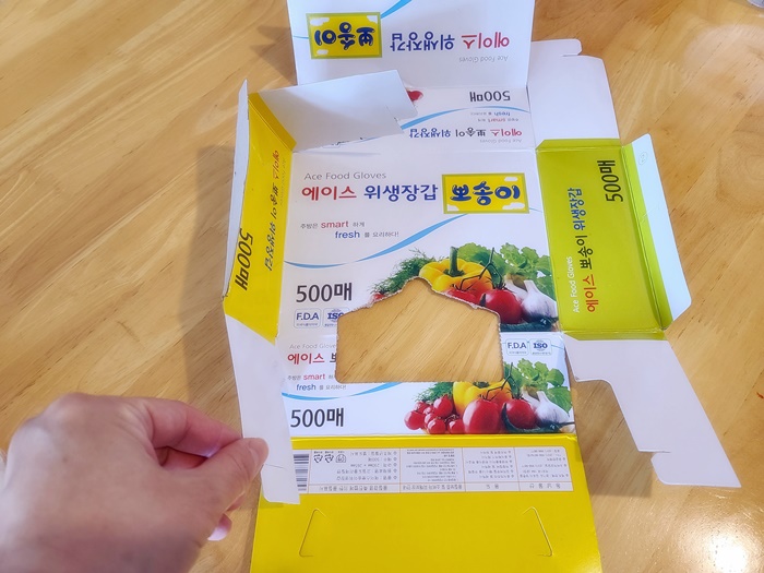 1회용 비닐장갑을 사용하다보면 흔히 겪는 일 중 하나가 종이 케이스가 너무 잘 풀린다는 점이다. 특히 양이 많은 경우엔 더욱더 그런 일이 잦다.
